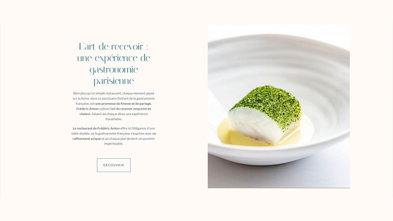 Nous avons imaginé une conception entièrement modulaire, alliant ergonomie et design sur mesure. Ce dispositif offre à la marque la liberté de présenter ses lieux et ses offres à travers différents parcours utilisateurs. L’architecture technique, pensée pour la souplesse et l’évolutivité, facilite la mise à jour des contenus et l’intégration de nouvelles fonctionnalités au fil de l’eau.